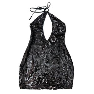 Murci sequin plunge halterneck mini dress in black 4 NWT