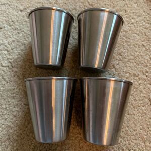 4 Murder Ballad Studio Theater 2 1/4” Stainless Steel Cups. Some of the print has partially worn off.