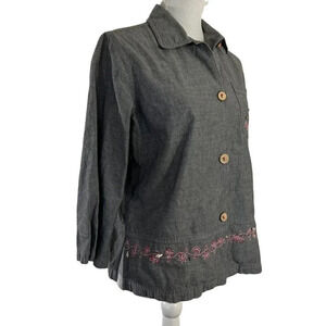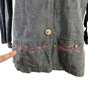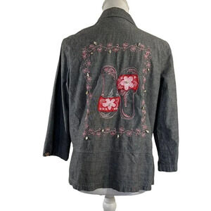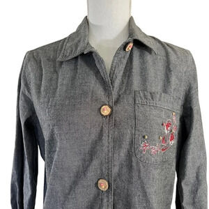 Mureli Gray Flip Flop Embroidered Seashell Embellished Beaded Button Up Shirt