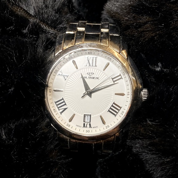 Authentic Murex watch, Swiss made, silver, stainless steel, and water resistant. Some signs of wear, just needs a polish.