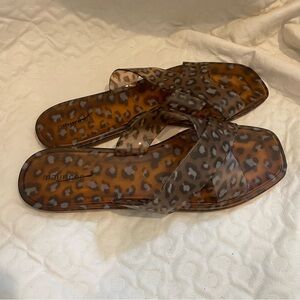 Murices Leopard Print Women's Sandals 10 Translucent Brand Black Slip On NWOT