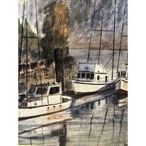 Vintage signed Muriel Wilhelmi sailboat watercolor lithograph. Original matting. 6.5 x 4.5 in a 9 x 11 frame. The frame is vintage and is not the highest quality, but it looks great. You can easily replace with another frame. No glass. Wonderful piece of art and signed by the listed artist.