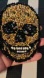 Unique skull brooch with intricate gold and black beadwork. Perfect for adding a bold touch to any outfit.