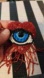 Add a touch of elegance with this stunning red and blue eye brooch. Perfect for any occasion.