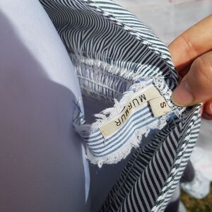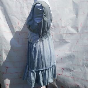 Murmur dress. Size small. Ruffle skirt. V neck front and back. Rouched back waist. button details with wild strings.