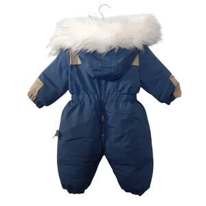 MurmurBear Baby Bunting Thermal Snowsuit Diaper Zip Blue Faux Fur Toddler 2T