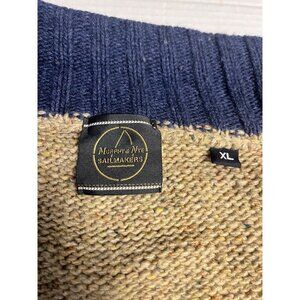 This Murphy & Nye Sailmakers sweater offers quality craftsmanship with a wool blend for comfort. Featuring a full zip and contrast collar, it's both durable and stylish. Excellent preowned condition, no rips holes or stains. See photos for approximate flat measurements. Preppy, academia, business casual.