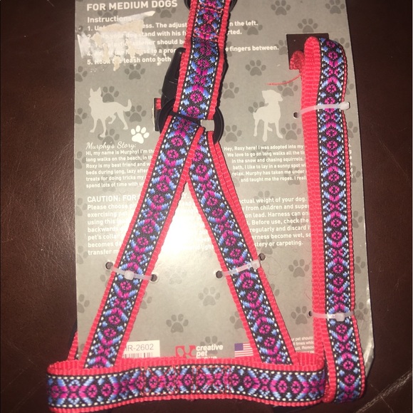 Tribal Print Harness & Leash Set for Medium Dogs. Color: Red’ White’ and Blue