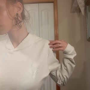 Gender neutral white pullover hoodie from Aesthetic Revolution. Muscle Fit/Fast Dry/Performance Fiber. Amazing condition but has been worn. Price negotiable!