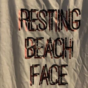 It’s never been worn and super fun. The tank reads: Resting Beach Face.