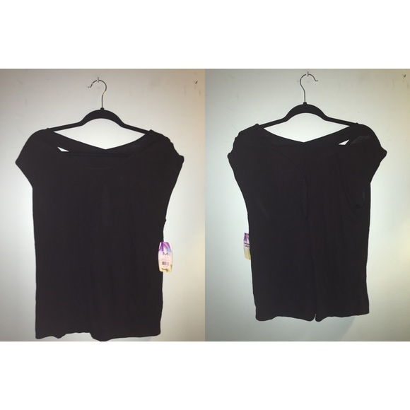 Black casual or work out shirt. 65% polyester 35% rayon. Small open back cut out.