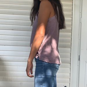 Simple but still very appealing just the right look and fit for any type of exercise. It’s not cropped but it is shorter than a normal length shirt, the plus is that it’s light purple and it has no damages!