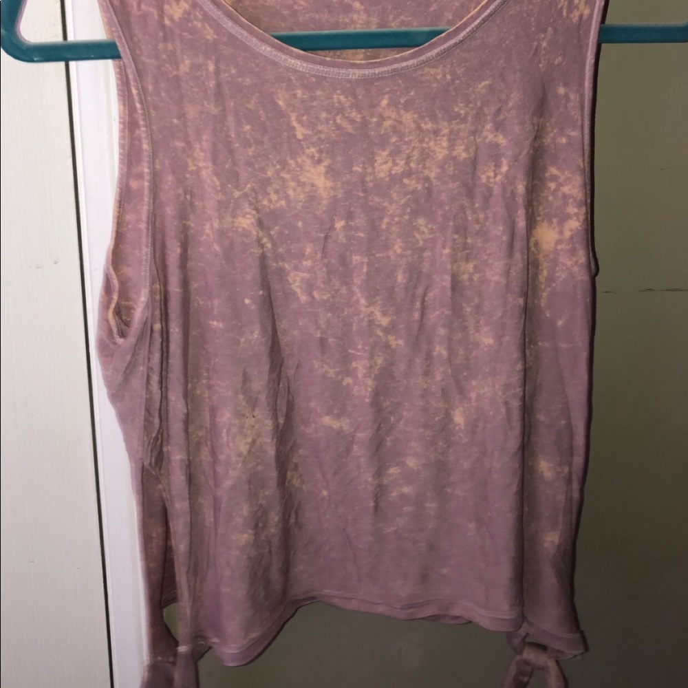 It is a muscle tee that has holes on the side that tie at the bottom. Very comfortable and only has been worn a few times. If you buy it it'll be freshly washed and cleaned so you can wear it once you get it☺️ Enjoy