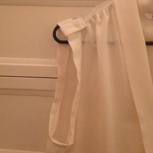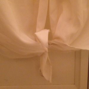 A sheer muscle tee with a tie knot at the bottom. Cream colored. In very good shape!