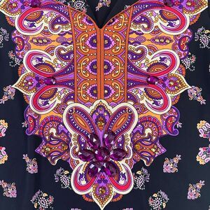 Muse Black Orange Purple Paisley Gemstone Mini Dress Flare Sleeve Boho Hippie 8