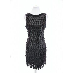 Muse Black Tired Faux Leather Tulle Sheath Dress Sz 8 Art-to-Wear Vegan