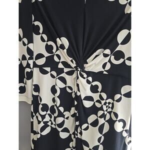 Muse Black White Geometric Twisted Front Long Sleeve Shirt Dress Womans Size 10. Pre-owned