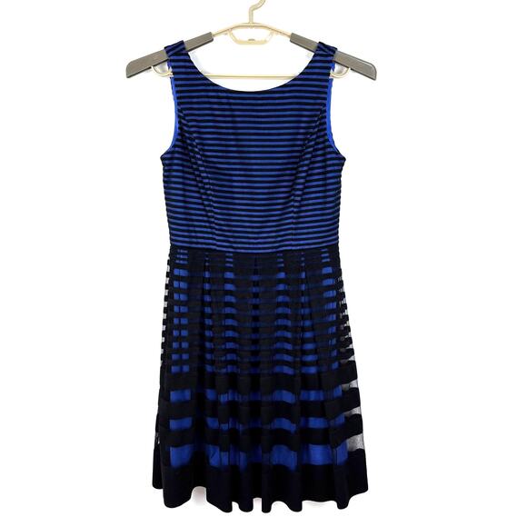 Muse Blue Black lace overlay sleeveless knee-length dress 6 twee