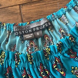 Stunning dress, like new! The best stretchy spandex material! A boho peasant style dress, elastic at neckline. Can be worn off the shoulder. Perfect for spring and summer and so easy to pack for a vacation. Vibrant color and pattern.