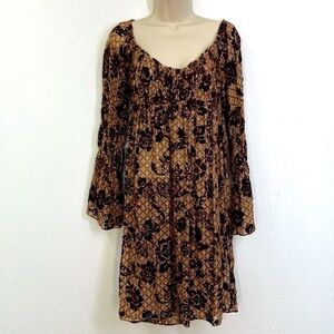 Muse Boston Proper - Flat Cream Lace Look wit Brown Velvet Floral Throughout Ruched Gathering At Chest And Sleeves Dress