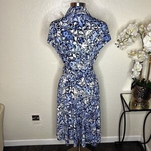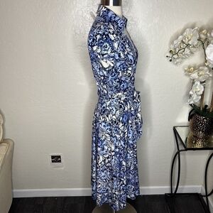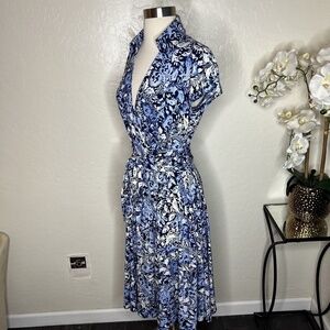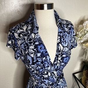 Muse Boston Proper Wrap Dress Womens Size 4 Blue Floral V-Neck Short Sleeves.