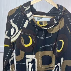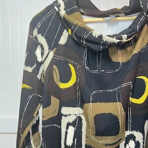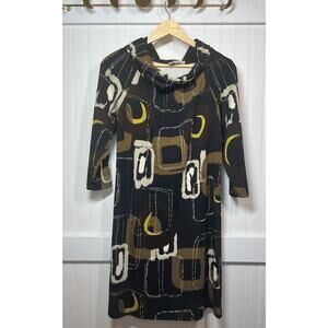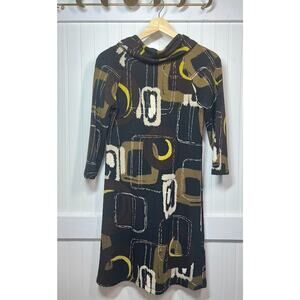 Muse Geometric Pattern Tunic Dress 3/4 Sleeves Retro Abstract Print Cowl Neck