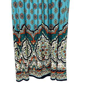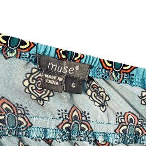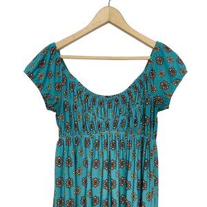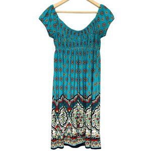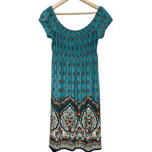 Muse Milkmaid Dress Womens 4 Blue Floral Stretch Knit Puff Sleeve Boho Hippie