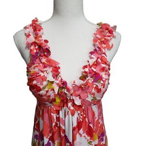 Muse Multicolor with Beads & Fabric Flowers Empire Cut Dress Sz 2
