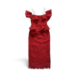Muse by Marchesa Amaryllis Lace Off-The- Shoulder Midi Red Dress Size 0