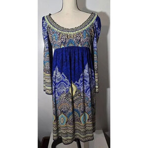 Muse for Boston Proper Blue Medallion Geometric Print Empire Waist Dress Sz 6