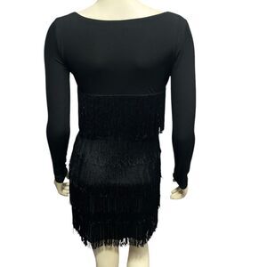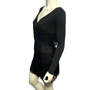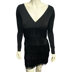 Muse for Boston Proper Black Long Sleeve Dress with Fringe Vneck Flapper Dress