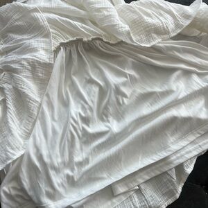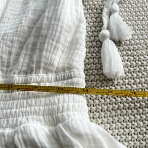 This chic white mini sundress by Muse features a halter neckline and sleeveless design, perfect for wedding occasions. The flowy, tiered skirt adds movement, while the fitted bodice enhances the silhouette. Crafted from a light, airy fabric, it's ideal for warm weather events.