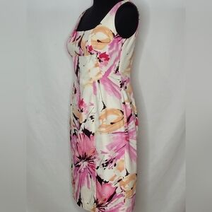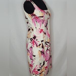 Musette Sleeveless Princess Seams Abstract Floral Midi Sheath Dress - Size 6