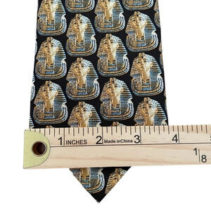 Museum Artifacts Egyptian Pharaoh King Tutankhamen Mask Men’s 100% Silk Neck Tie Black Handmade