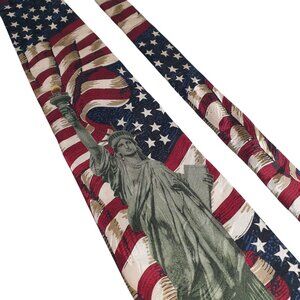 Museum Artifacts Tie Statue Of Liberty American Flag USA Themed Silk Classic