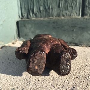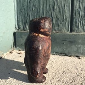This is a Rare ORIGINAL Museum retired and Museum excavation numbered Taino effigy sculpture made of pottery that served as a mortar and pestle. This sculpture is carved and molded depicting a likeliness of a man, most likely a God like figure, with big eyes. The Taíno were an indigenous people of the Caribbean. Their spirituality centered on the worship of zemís. A zemí/cemí is a spirit or ancestor. The Taíno society was made up of naborias (commoners) and nitaínos (nobles). The naboria women were highly skilled in agriculture; the people depended on it, and worshiped the zemi god Yucahu, which means spirit of cassava, the Taínos' main crop. This effigy had some damage to it and repairs were made during the Museums excavation. This is a piece that once served a purpose. The pottery itself is soft and very solid. This piece was decommissioned from a museums collection. Taino art is the last unexplored pre Columbian aesthetic, making this very rare and ORIGINAL piece a great addition for any collector.