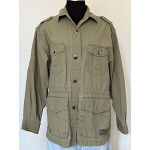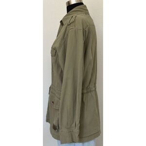 Museum of the Bible Olive Green Jacket Size Medium Button Front Adjustable Waist