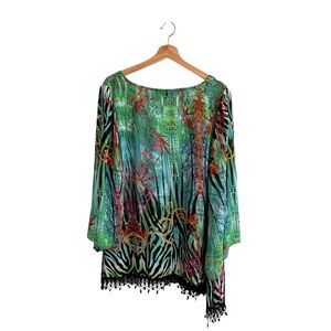 Mushka By Sienna Rose Tropical Print Tunic Top Size 1X Asymmetric Hem Resort Beachy Boho Loose