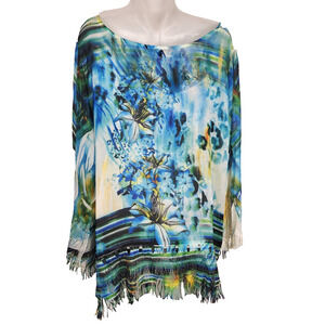 Mushka By Sienna Rose Women Sublimation Tassel Blouse Sheer Artsy Bell Sleeve 3X
