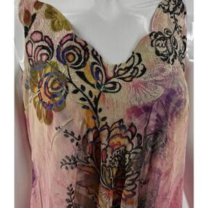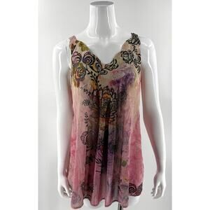 Mushka Sienna Rose Womens Tunic Top Sz Medium Pink Embroidered Sheer Boho Flowy