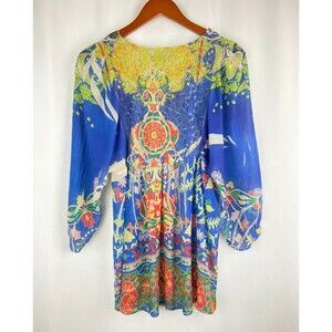 Mushka by Sienna Rose Top Women M Hippie Boho Beaded Lace Artsy Tunic Semi Sheer