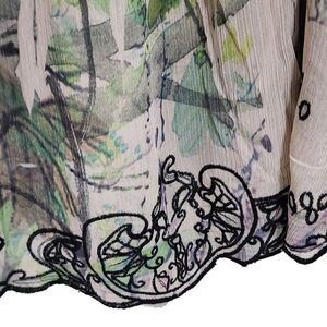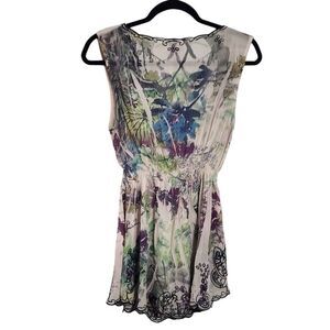 Mushka by Sienna Rose sleeveless v-neck multicolor sheer floral embroidered smock waist blouse 30" bust 22" smock waist 29" long excellent condition