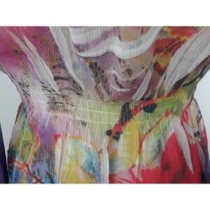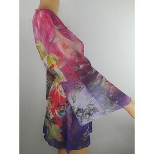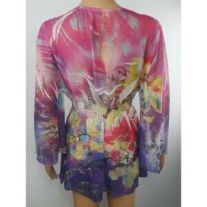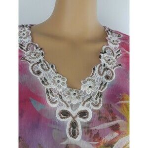 Mushkaby By Sienna Rose Semi Sheer Blouse Top Womens Size Small Purple, Pink, Yellow, Red, Multicolored sequined, Beads Lace. Condition is Pre-owned. Shipped with USPS First Class Package.