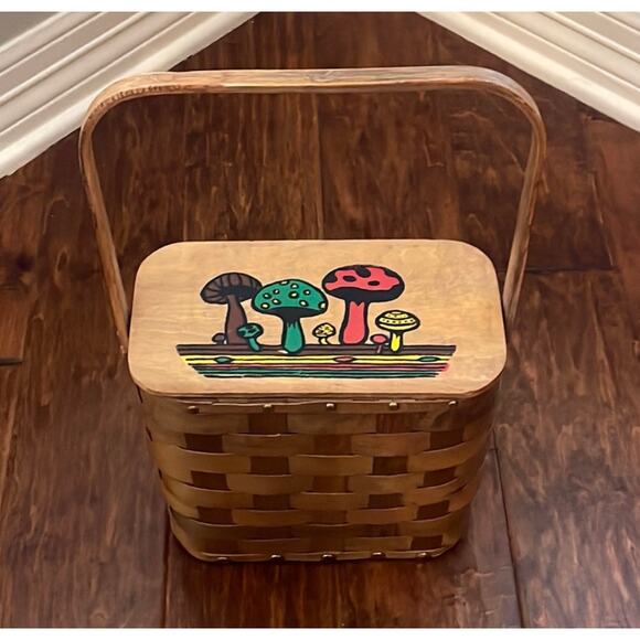 Mushroom Basket Purse Vintage Hand Painted Retro Kitsch Lined Made in Hong Kong