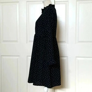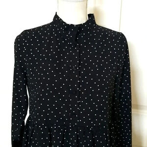 Long sleeve Dress, buttn up front, ruffled and bottom of sleeves. Fully lined