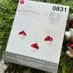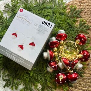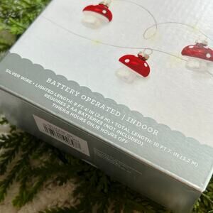 Wondershop by Target LED Mushroom Lights Warm White 9’ 4 4/5” Lighted Length Silver Wire Requires 2 AA batteries not included. Timer 6 hours on, 18 hours off. Used one Christmas. Perfect for any woodland theme room to party to fall to Christmas. ▪️Measurements are approximate only ▪️See photos as they are part of the listing and description ▪️Please note colors may vary in person from on screen