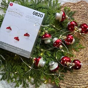 Mushroom Dewdrop Lights LED Red Warm White String Timer Battery Operated