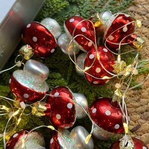 Mushroom Dewdrop Lights LED Red Warm White String Timer Battery Operated
