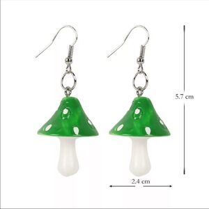 Super cute mushroom earrings. 3 dimensional drop earrings. Whimsical hand painted. Available in pink, blue, yellow, green or red. Choose your color. Brand new, never worn. Photos are a part of the description. Color may vary with lighting or device.