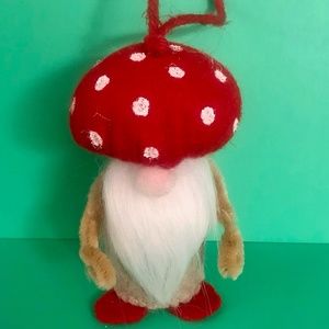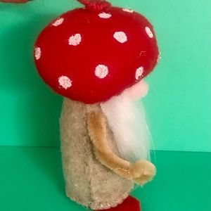 Mushroom Gnome Ornament (Natural with White beard) hand-sewn